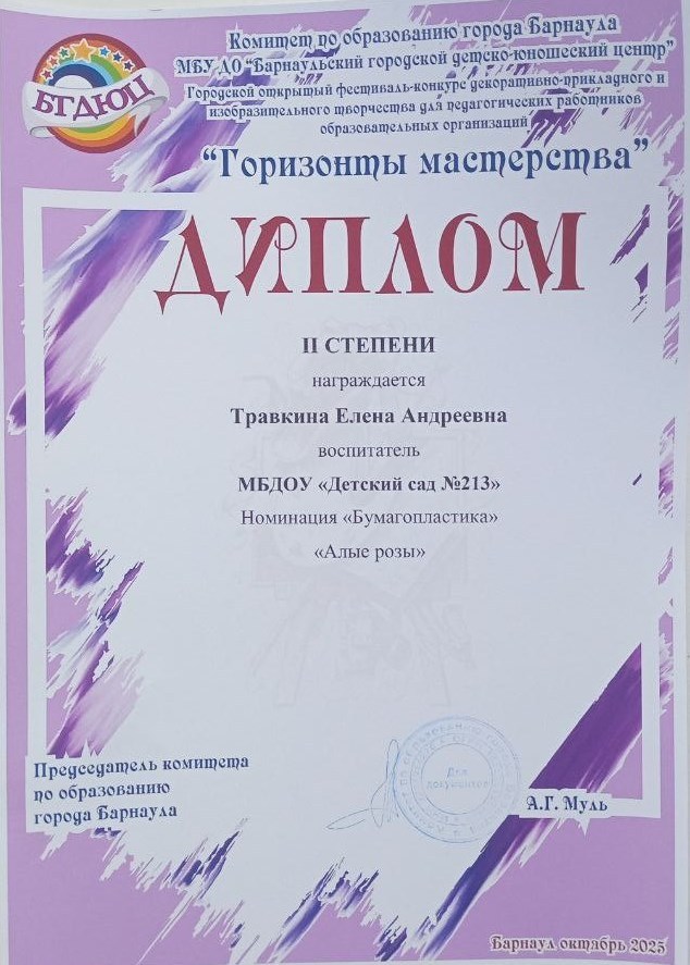 Поздравляем юную художницу и её семью с заслуженной наградой! Особую благодарность выражаем родителям и воспитателям за поддержку творческого развития ребенка и помощь в подготовке работы к конкурсу.